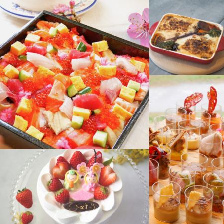【3/3(火)12時以降お届け】女子たちの春雛🌸桜(豪華海鮮ひなちらし&ケーキ&他2品)